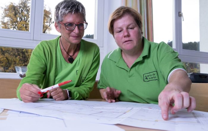 Für Schritt für Schritt entstanden 2020 auf dem Hof extra Räumlichkeiten, das nach modernsten Kenntnissen des barrierefreien Bauens errichtet wurde. Darin sind mehrere große Therapie- und Gemeinschaftsräume, Küche und Wirtschaftsraum. Hier finden Therapien in Einzel- und Gruppensettings sowie pädagogische und konduktive Fördereinheiten statt. Als Besonderheit können auch die Tiere und die Natur in die Fördereinheiten miteingebunden werden. Das zeigt sich in Formen der